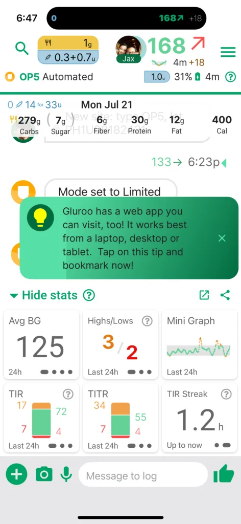 Gluroo v1.3.138 focuses on making your diabetes management smoother, faster, and more personalized. With a redesigned settings menu, smarter logging tools, and expanded forecasting, this update gives you more control with less time looking for what you want.
